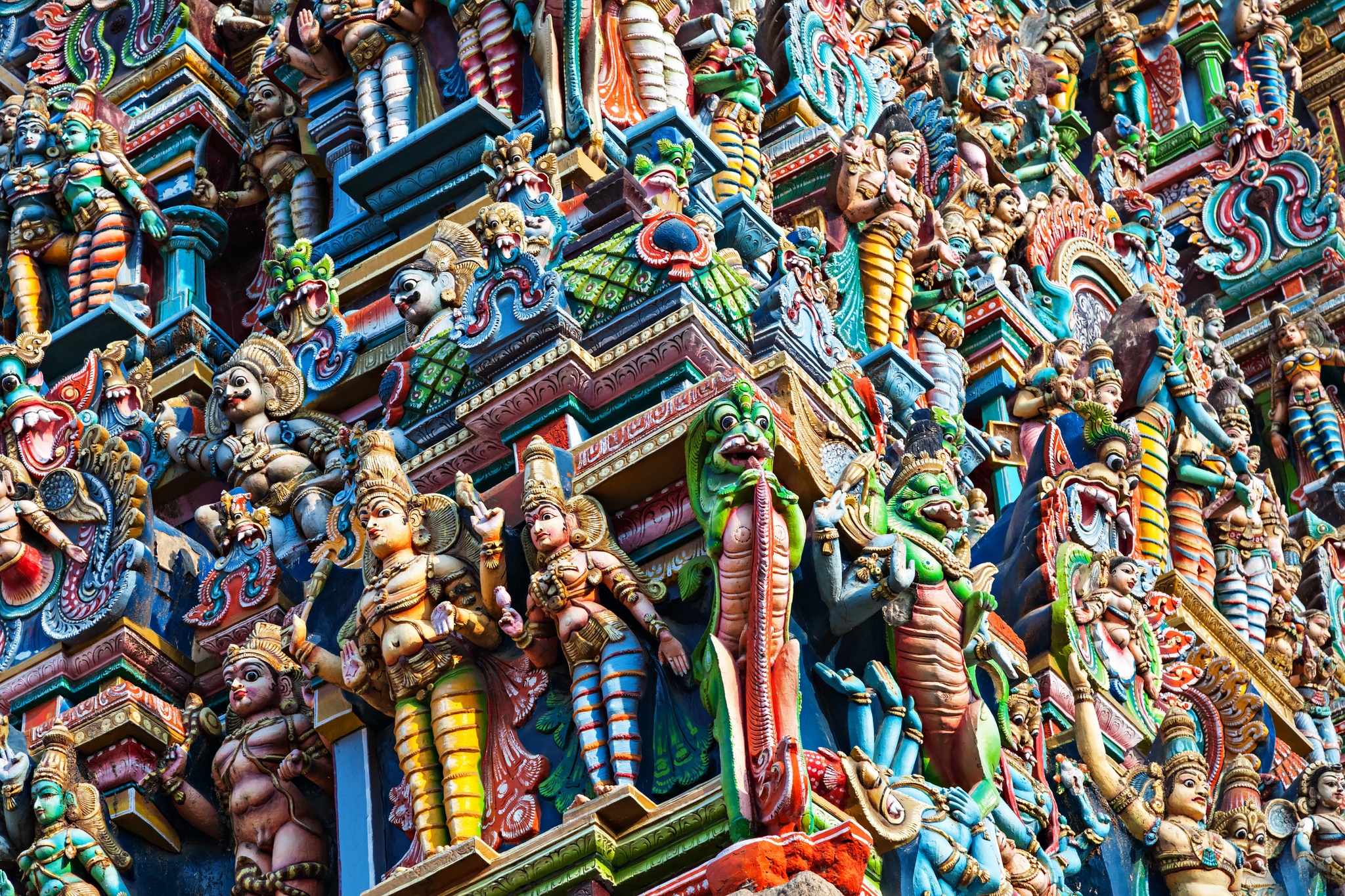 In het zuiden voelt India bijna zacht aan. De lucht is zwaar van de warmte, palmbomen wiegen boven het water en het leven lijkt zich af te spelen op het ritme van de natuur. De tempels zijn hier geen stille monumenten, maar levendige plekken waar religie en dagelijks leven samenvloeien. Je wandelt er tussen kleurrijke torens en wierookgeuren, terwijl het landschap langzaam overgaat in groene theeplantages en de beroemde backwaters van Kerala, waar je letterlijk door het leven van de locals vaart.