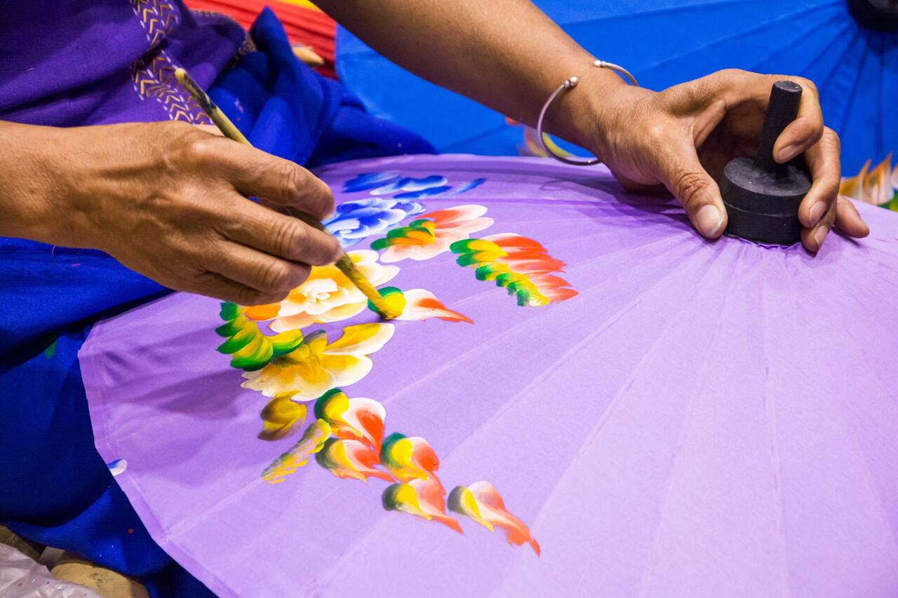 Wandelend door de ambachtelijke werkplaatsen merk je waarom de lokale vakmensen al eeuwenlang bekendstaan om hun precisie en oog voor detail. In kleine ateliers worden kleurrijke papieren parasolletjes met de hand gemaakt, zijde geweven volgens traditionele patronen en zilver gesmeed tot sieraden en gebruiksvoorwerpen. Zo blijft de Lanna-cultuur niet alleen zichtbaar, maar ook tastbaar en levendig.