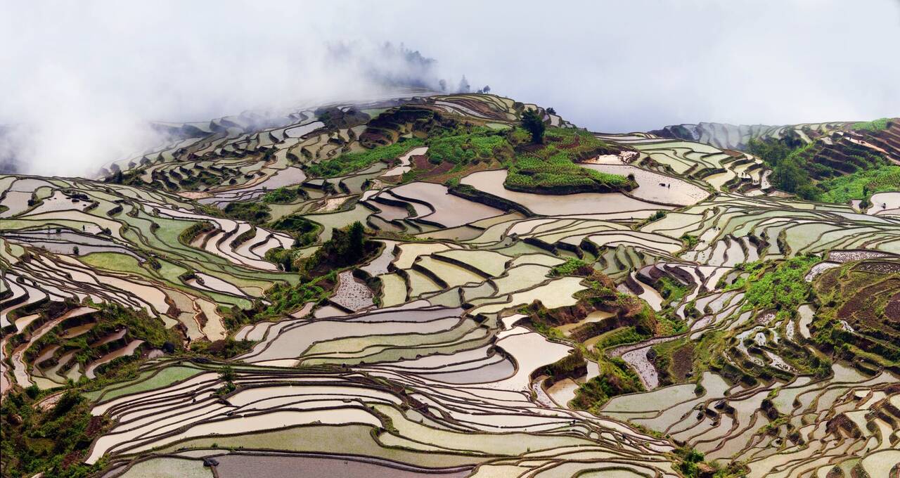 Dat het gebied bijzondere klimatologische omstandigheden kent, is ondertussen geen geheim meer. Het Hani volk heeft er in de afgelopen 1.300 jaar hard gewerkt om de bergen om te toveren tot vruchtbaar gebied. Een complex kanelensysteem om water uit de beboste bergtoppen naar de terrassen te brengen is het resultaat. De rijstterrassen worden gezien als een wereldwonder en zijn niet voor niets UNUESCO-werelderfgoed. Ook een landbouwsysteem met buffels, koeien, eenden en vis is een gevolg van het harde werk van het Hani volk. Hierdoor is de productie van rijst gemakkelijker.