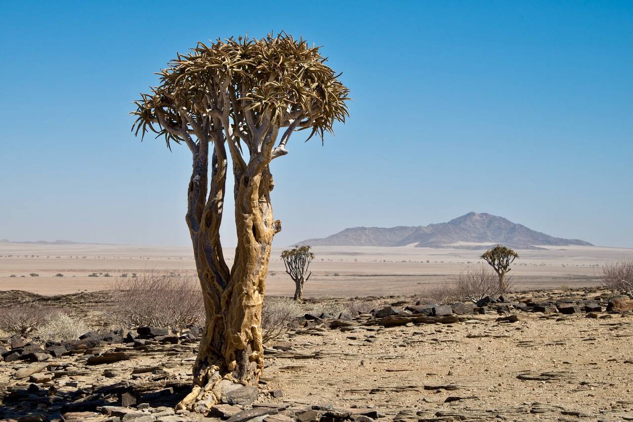 Namibië is een ware parel van zuidelijk Afrika, een droom voor natuurliefhebbers. Stel je een reis voor langs surrealistische landschappen: van indrukwekkende basaltformaties, iconische woestijnen en uitgestrekte zoutvlaktes tot de adembenemende diepten van de op een na grootste kloof ter wereld. Namibië biedt niet alleen indrukwekkende natuur, je maakt ook kennis met fascinerende volkeren zoals de San, Herero en Himba. Avontuur en ontdekking wachten om elke hoek!