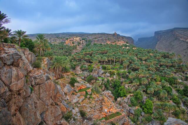 In en rond het vruchtbare bergmassief Jebel Akhdar exploreer je oude forten, paleizen en traditionele dorpjes met lemen huizen waar unieke falaj zorgen voor de irrigatie van de omliggende fruitboomgaarden en dadelplantages.